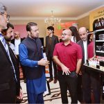 Sindh Minister for Information and Transport, Sharjeel Inam Memon, talking to media persons regarding the ongoing development work on the Taj Haider Bridge.