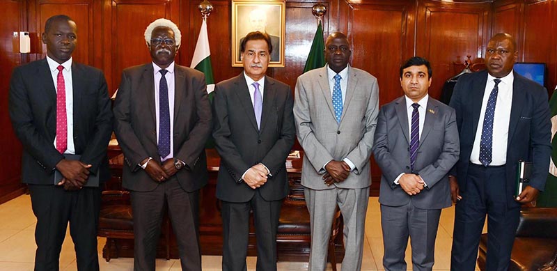 ISLAMABAD: January 21 – Speaker National Assembly Sardar Ayaz Sadiq receiving Deputy Speaker Transitional National Legislative Assembly of South Sudan Mr. Kornelio Kon Ngu Akuck at Parliament House. APP/IQJ/FHA