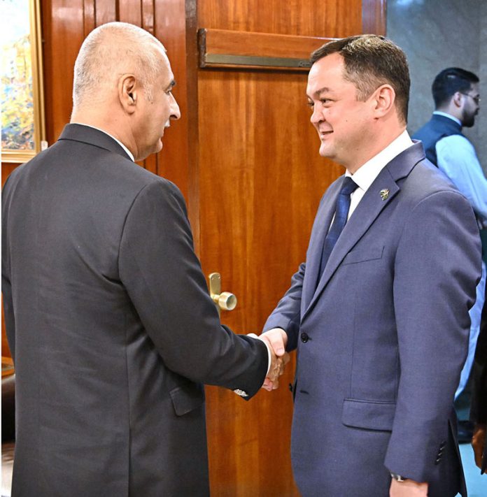 Speaker National Assembly Sardar Ayaz Sadiq receiving Ambassador of Uzbekistan Mr. Alisher Tukhtaev at Parliament House in Federal Capital