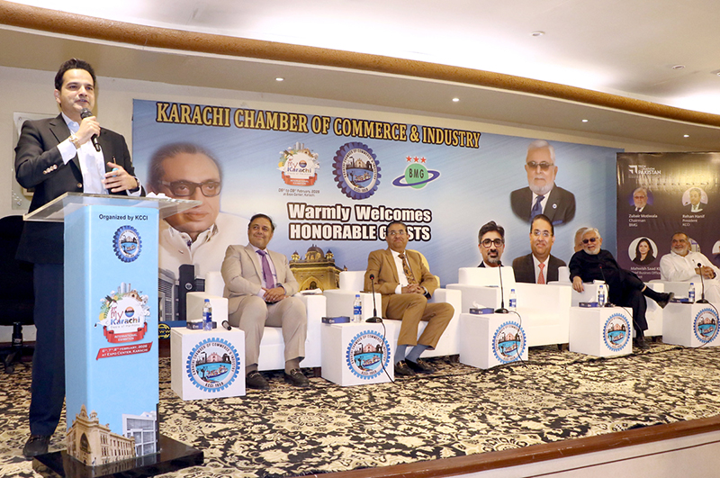Special Assistant to the Chief Minister (SACM) of Sindh for the Science and Information Technology Department, Ali Rashid addressing during Session on “AI Infrastructure & Data Economy” INDUS AI Week 2026 at Karachi Chamber of Commerce & Industry KCCI.