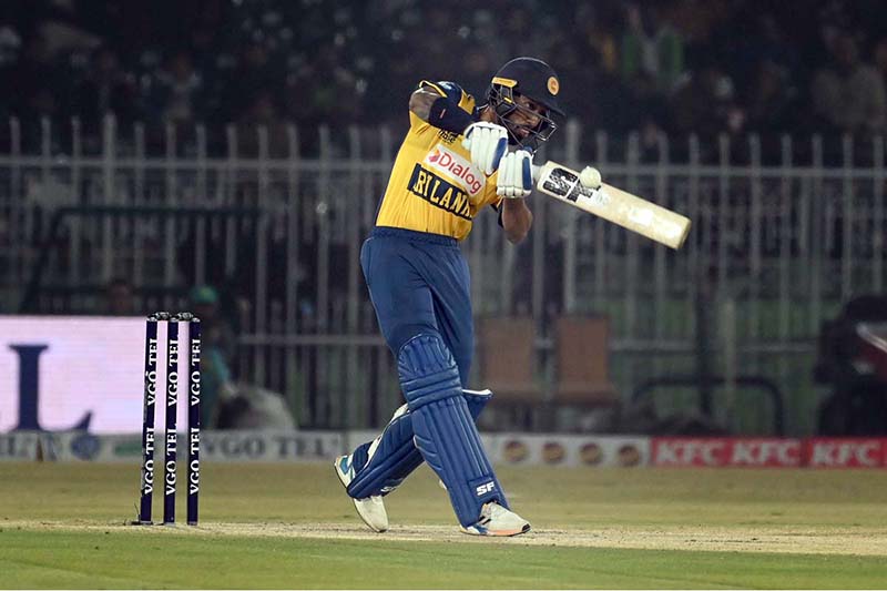 RAWALPINDI: November 22 - Sri Lankan batter Kamil Mishara plays a shot during the T20I Tri-Nation Series match between Sri Lanka and Pakistan at Pindi Cricket Stadium. APP/ADZ/FHA