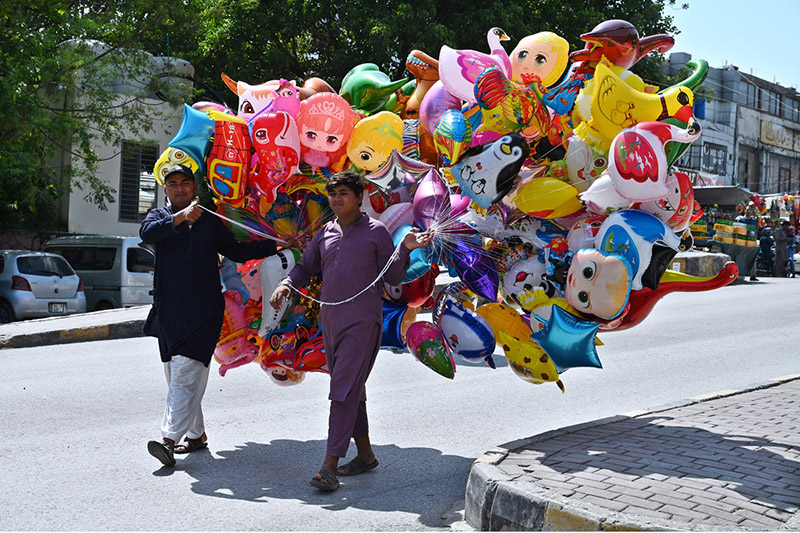 Street hawkers displayed colorful balloons to attract the customers in the city.
