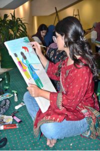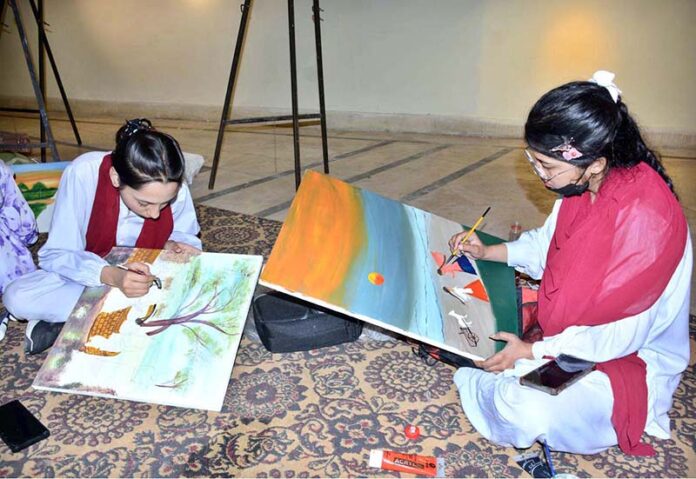 Student artists participate in a painting competition marking Punjab Culture Day organized by Punjab Arts Council Faisalabad Division