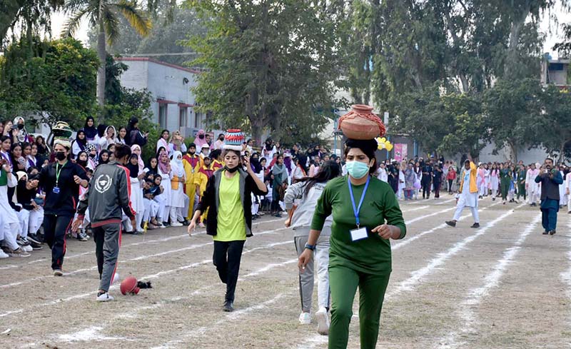 SIALKOT: November 16 – Students participating in tug of war game during 2nd (HED) higher education sports event at the Govt Allama Iqbal College for Women APP/MUT/MAF/FHA