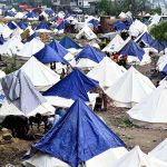 Students arriving at school on the first day after summer vacation in the provincial capital.
