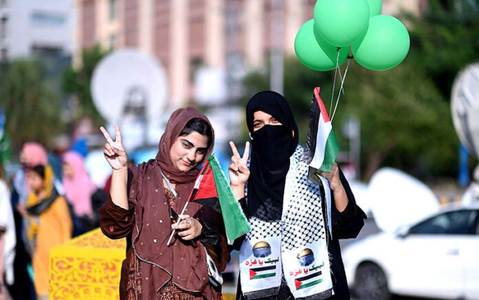 Lahore:October 07-Students of various colleges and universities are showing solidarity with the Palestinians on the occasion of Palestine Solidarity Day.
