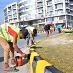 Students holding banners and raising slogans during march to mark Kashmir Solidarity Day reaffirming their support for the cause on Risala Road.