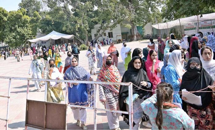 SARGODHA: September 22 – Students leaving Sargodha University after participating in the medical entrance test (MCAT).
