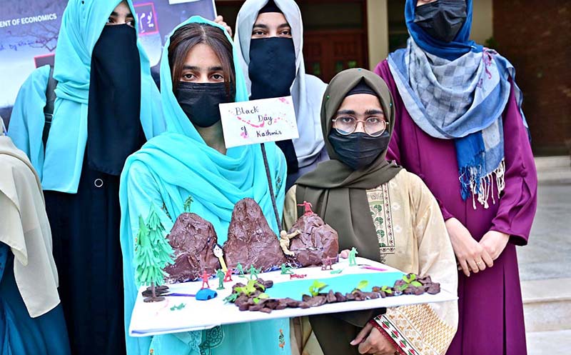 FAISALABAD: October 27 β Students of Government College Women University Faisalabad (GCWUF) participate in a walk to mark Kashmir Black Day on the university premises. APP/TWR/MAF/TZD/SSH