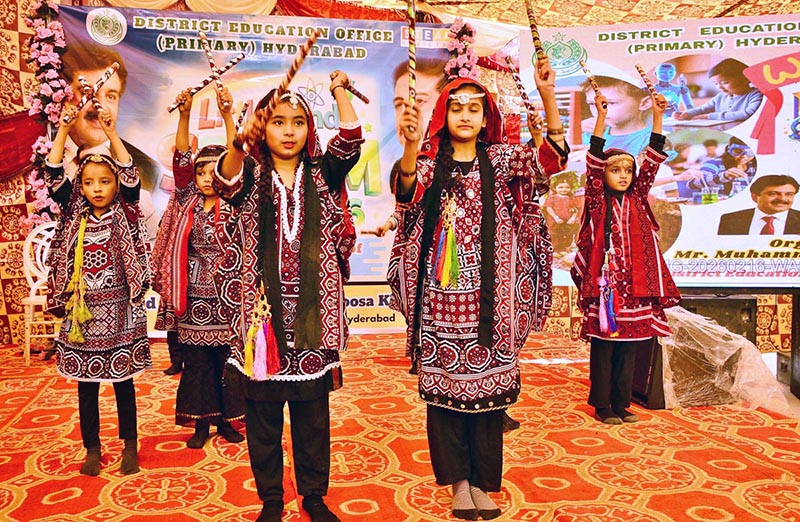 HYDERABAD: February 16 – Students performing in tableau on the stage during Little Minds STEAM Expo 2026 organized by District Education Office (primary) Hyderabad at Government Girls Elementary Primary School Citizen Colony. APP/FHN/MAF/TZD