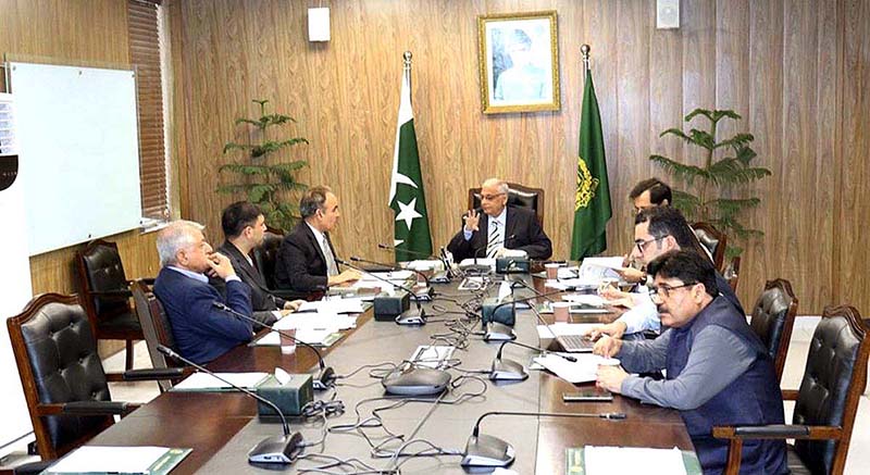 ISLAMABAD: September 06 – The Caretaker Minister for Planning Development & Special Initiatives Muhammad Sami Saeed chairs a meeting to review progress over 4RF policy framework at the Ministry. APP/TZD/ABB