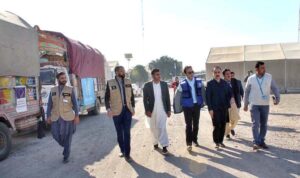 PESHAWAR: January 28 – The convoy of 11 trucks loaded with relief goods dispatched by Pakistan National Disaster Management Authority (NDMA), in collaboration with UN agencies to Kurram District. APP/SYR/ IQJ/TZD/ABB