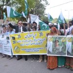 LAHORE: May 10 – The Defence of Pakistan Rally led by Dr. Raghib Hussain Naeemi, Chairman of the Islamic Nazaryati Council, is passing through Rally to express solidarity with the Pakistan Armed Forces at District Court Road. APP/AMI/ABB