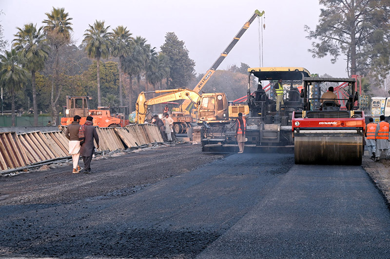 ISLAMABAD: January 10–The road is being carpeted by heavy machinery as the Serena Chowk