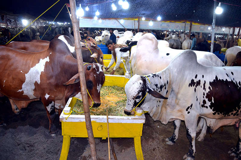 The sacrificial animals are being feeding at a cattle market ahead of Eid-ul-Azha