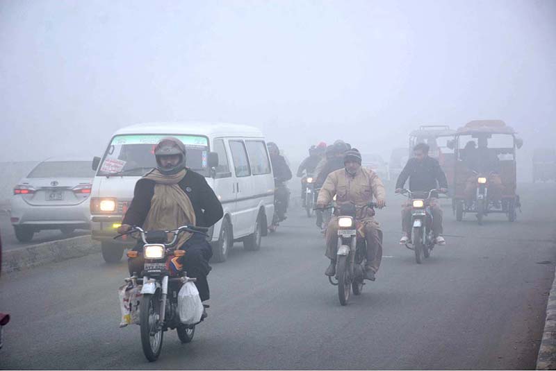FAISALABAD: December 15 – Thick fog blankets the city, creating difficulties for drivers as road visibility remains low during the early morning. APP/TWR/TZD/SSH
