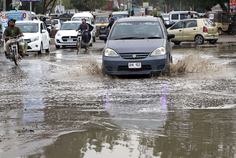 Vehicular traffic faces problems in movement due to stagnant water on the road after rain in different areas of the Provincial Capital.