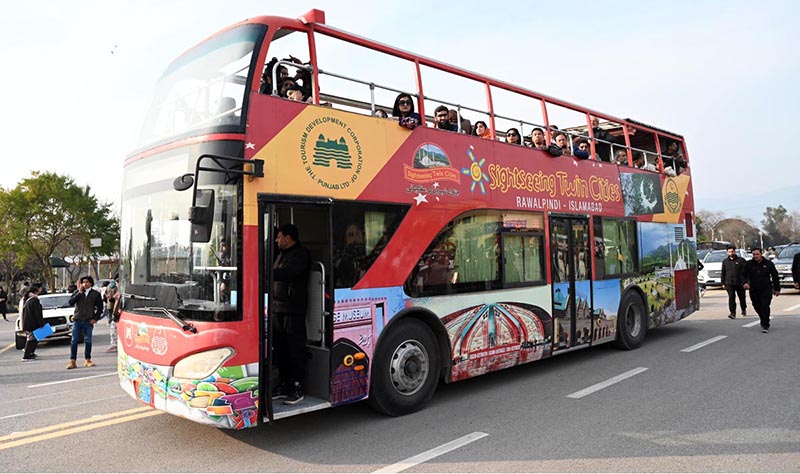 ISLAMABAD: February 01 – Visitors enjoy a double-decker bus ride during the two-day Pakistan Tourism, Sports & Family Festival at the Sports Complex in the Federal Capital. APP/SMR/IQJ/FHA