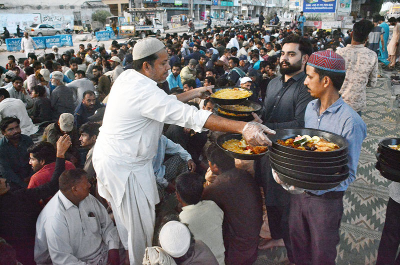 KARACHI: March 09 – Volunteers organize Iftar for people at roadside arrange by philanthropists during holy fasting month of Ramadan. APP/SDQ/TZD