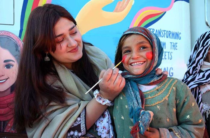PESHAWAR: January 25 – Woman making a painting on a child face during the 2nd Day of PDA Food & Culture family Festival with the support of UNICEF at Regi Model Town Park. APP/SYR/IQJ/FHA