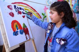 Woman making a painting on a child face during the 2nd Day of PDA Food & Culture family Festival with the support of UNICEF at Regi Model Town Park
