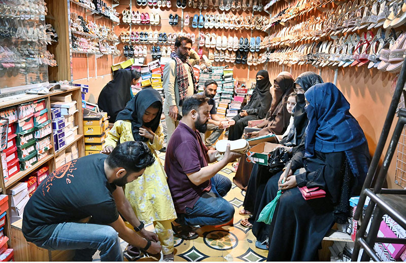 Women busy selecting sandals at a shoe shop in Latifabad Market in preparation for the upcoming Eid al-Fitr. APP11-190325HYDERABAD: March 19– Previous Post Prime Minister Muhammad Shehbaz Sharif departs on 4 day official visit to Saudi Arabia. Next Post A lady selects to purchase artificial jewelry from a vendor in preparation of the upcoming Eidul Fitr at Latifabad market.