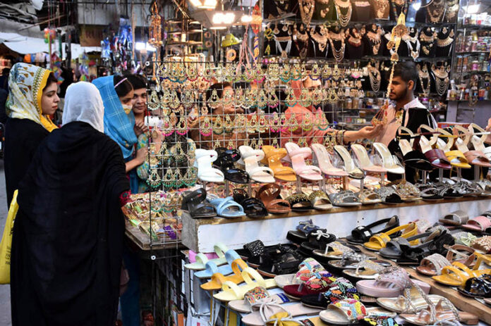 Women busy shopping on Chaand Raat in preparation for Eid ul Fitr at local market
