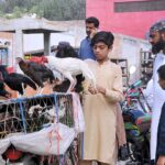 ISLAMABAD: March 25 – Women queueing up outside Benazir income support centre to receive cash money at Sitara Market.