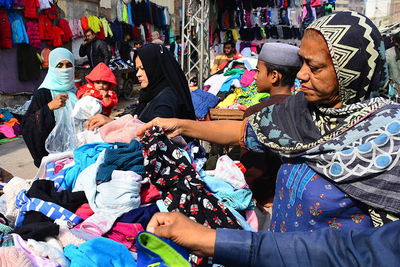 HYDERABAD: January 02 – Women select and purchase cloth pieces from a vendor at a local cloth market. APP/FHN/MAF/FHA