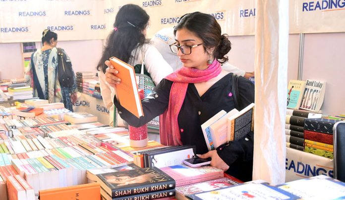 APP33-070226 KARACHI: February 07 –APP34-070226 KARACHI: February 07 – Women take keen interest in books at a stall during the 17th Karachi Literature Festival (KLF) at a local hotel. APP/IQJ/SDQ/ABB