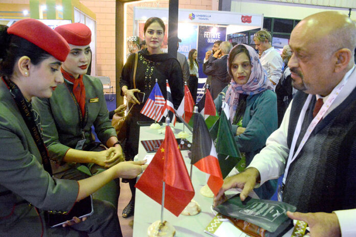 Women visiting different stalls during the second day of Pakistan Travel Mart at the Expo Center