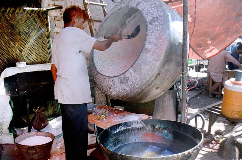 HomePhotosPhoto FeatureWorker busy in making traditional sweet item at his workplace