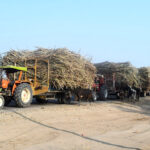 MULTAN: February 06 – Workers are busy embroidery work on dresses at their workplace.