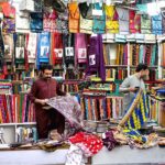 Workers busy in dying the clothes of customers at Cloth Market in the Provincial Capital. APP52-100325LAHORE: March 10 – Previous Post Shopkeeper displaying the unstitched clothes to attract the customers at Cloth Market in the Provincial Capital. Next Post A vendor arranging and displaying strawberry to attract the customers at his roadside setup.