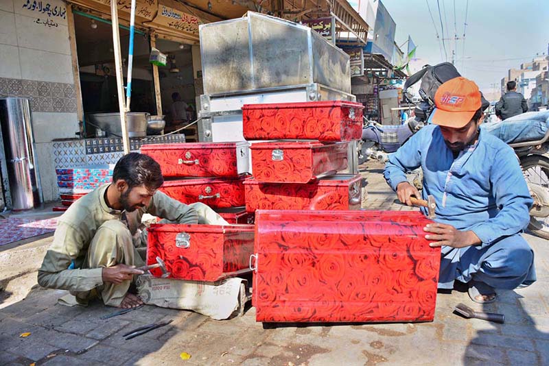 HomePhotosPhoto FeatureWorkers busy preparing the metal iron boxes at their workplace