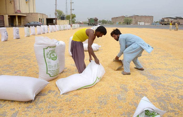 HomePhotosGeneral Coverage PhotosWorkers fill sacks with dried maize for transport and sale at a...
