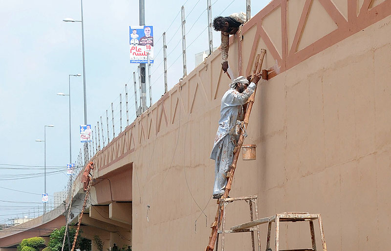 HomePhotosGeneral Coverage PhotosWorkers painting the wall of flyover at Kalma Chowk