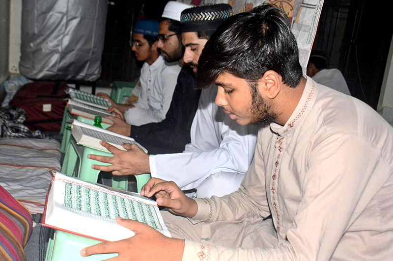 Youngster reciting the Holy Quran in a Jamia Masjid during the holy fasting month of Ramzan
