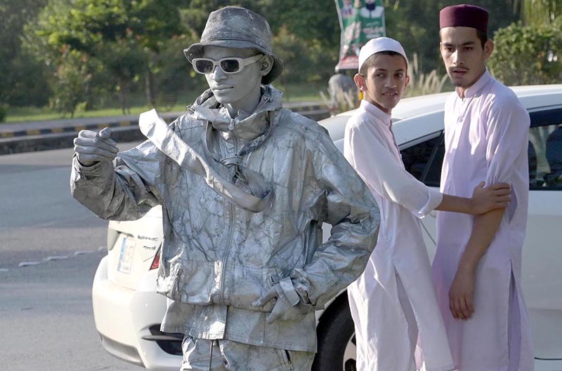 Youngsters keenly looking at the Silverman standing on the Faisal Avenue to earn for livelihood.