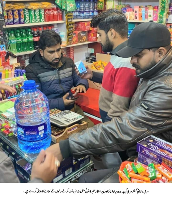 The district administration on Thursday carried out a joint operation against the sale of illegal cigarettes on Mall Road Murree, seizing a large quantity of illicit stock and initiating legal action against those involved.