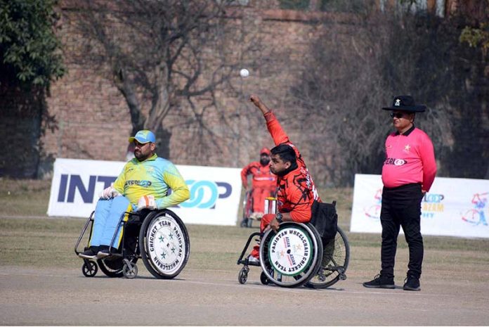 FAISALABAD: February 13 – A view of the T20 cricket match between Gilgit-Baltistan and Punjab wheelchair cricket teams during the 5th Interloop Quaid-e-Azam Trophy 2026, organized under the aegis of the Pakistan Wheelchair Cricket Council (PWCC) at Bohran Wali Ground. APP/TWR/MAF/ABB/FHA