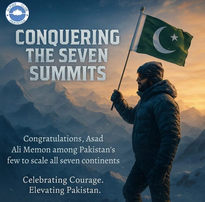 Asad Ali Memon now joins the elite group of mountaineers worldwide who have conquered the highest summits on all seven continents, a feat few in history have achieved.