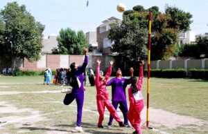 BAHAWALPUR: October 07-Excitement fills the air as the Bahawalpur and Ahmedpur girls teams clash in a fierce netball contest during the Annual Sports Gala 2024 at Bahawalpur Stadium.