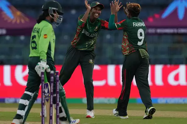 For Pakistan, Diana provided an early breakthrough with seven runs on the board before Rameen struck to remove Sharmin Akter as Bangladesh managed 35-2 in 12 overs. Fatima Sana removed Joty in the 25th over but in vain.