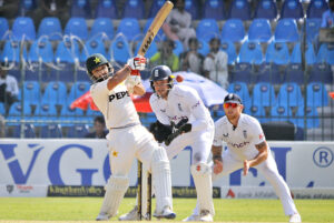 MULTAN: October 15 – Pakistan batter Shan Masood plays a shot during the first day of the second Test cricket match between Pakistan and England at the Multan Cricket Stadium. APP/QSM/MAF/TZD/ABB