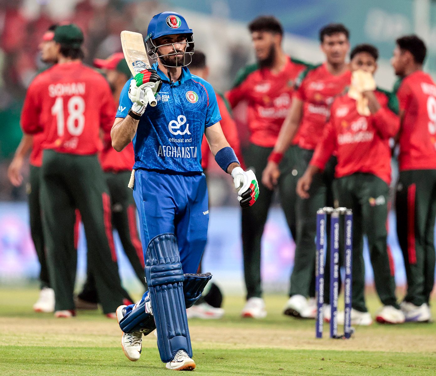 The incident occurred in the 37th over of Afghanistan’s innings, when after returning to the pavilion following his dismissal, Ibrahim hit some equipment near the dressing room with his bat.