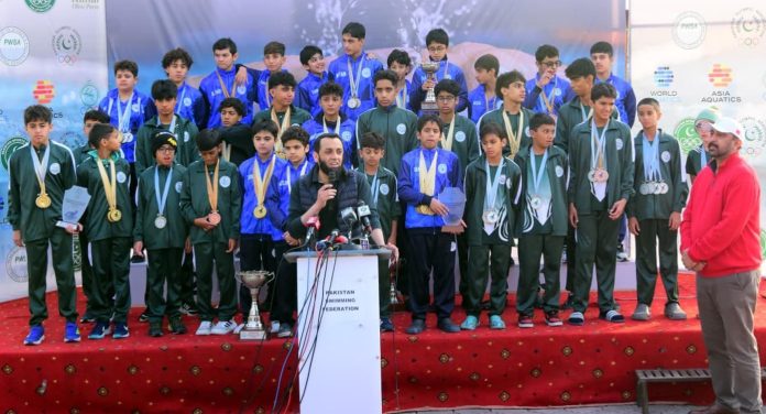In boys’ age group–10 and under, team Punjab took the first position while team Sindh was the runner-up and best swimmer was Muhammad Aban Kashif, PUNJAB (5 x Gold Medals).