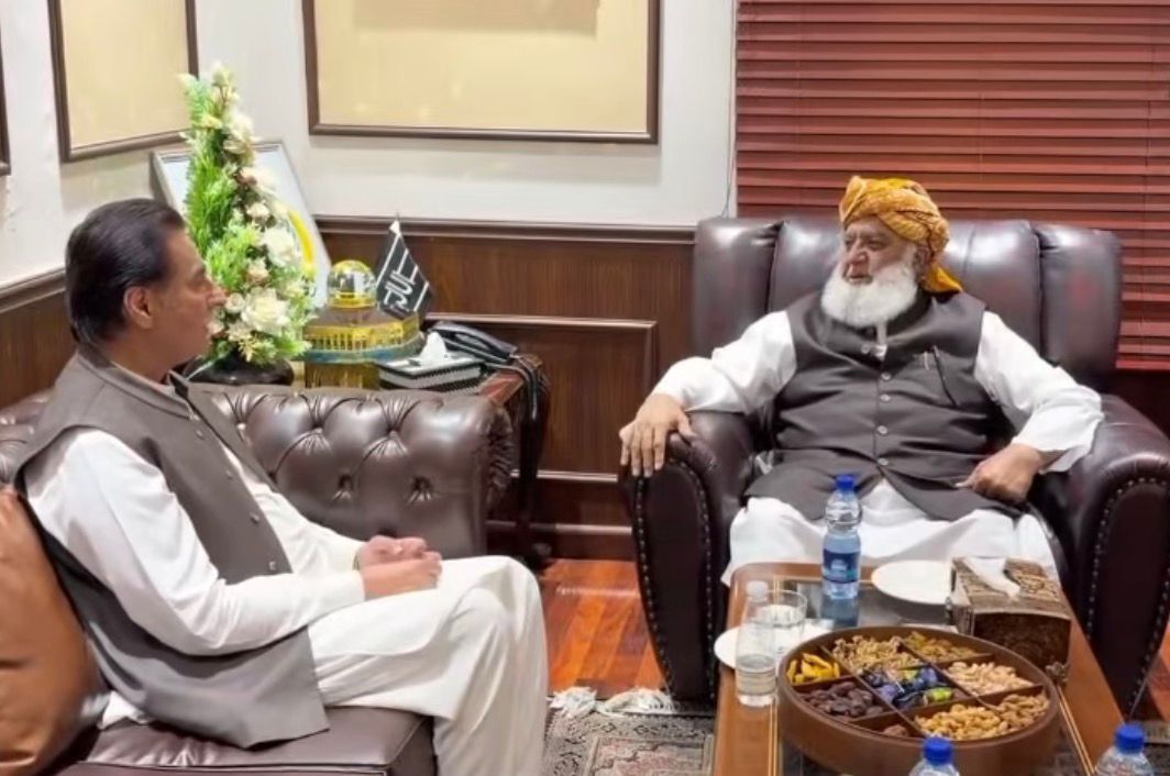 Speaker of the National Assembly, Sardar Ayaz Sadiq, on Tuesday met President Jamiat Ulema-e-Islam (JUI-F), Maulana Fazlur Rehman, and discussed the current regional situation and matters of mutual interest.