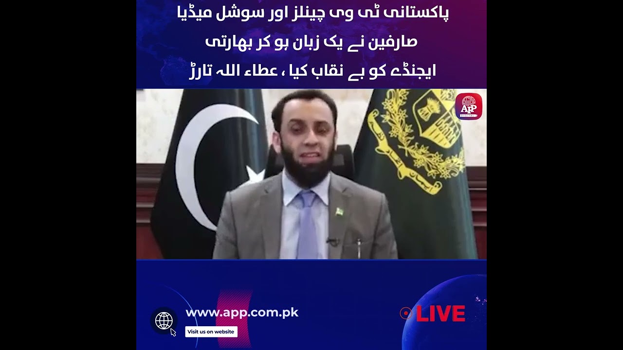 Pakistani TV channels and social media users united in exposing the Indian agenda : Attaullah Tarar https://youtu.be/eo6Q5BAXKdc?si=qY6UbXl6I0S8IStX Previous Post DPM Dar apprises UAE counterpart of NSC’s decisions on Indian unilateral actions Next Post Gazans face hunger crisis as Israeli blockade of aid nears two months: UN