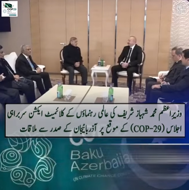 Prime Minister Shahbaz Sharif meet with the President of Azerbaijan on the occasion of the Climate Action Summit (COP-29) of world leaders. Previous Post SC dismisses petition against legislation during previous regime Next Post Mohsin Naqvi pays tribute to martyrs of Harnai operation, honors their sacrifice against terrorism